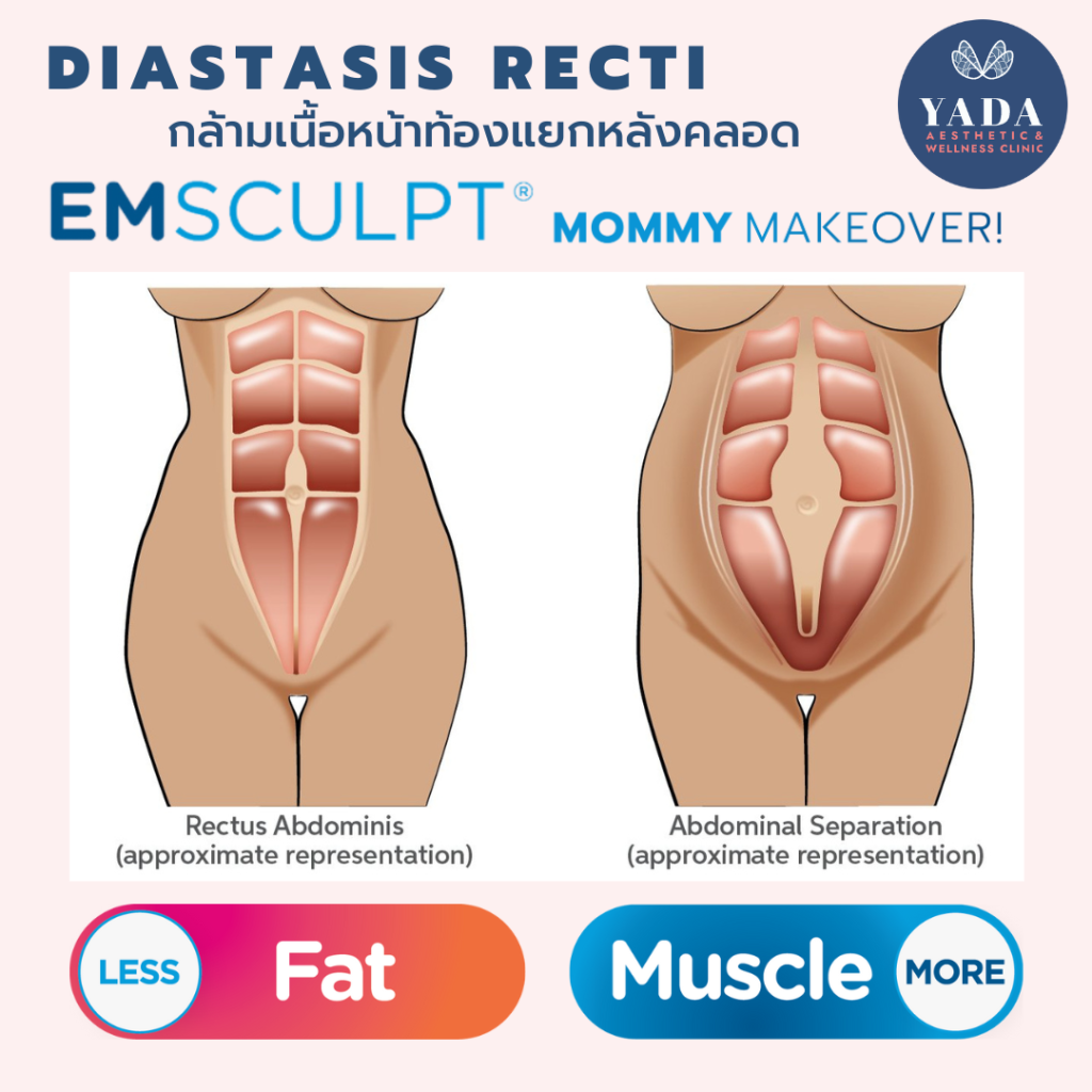 วันนี้หมอจะมาเล่าเรื่อง กล้ามเนื้อหน้าท้องแยก หรือ Mummy Tummy (Diastasis Recti) เป็นปัญหาหลังจากคลอดแล้ว กล้ามเนื้อที่ท้องไม่กลับไปชิดกันเหมือนเดิม ซึ่งนอกจากจะเป็นปัญหาเรื่องความสวยงาม และทำให้คุณแม่ไม่กลับไปมั่นใจเหมือนเดิมแล้ว ยังมีปัญหาสุขภาพอื่นตามมาอีกได้นะคะ กล้ามเนื้อที่ท้องแยกจะทำให้ Pelvic floor dysfunction ตามมาด้วยปัญหาปวดหลังเรื้อรัง กลั้นปัสสาวะไม่ได้ค่ะ