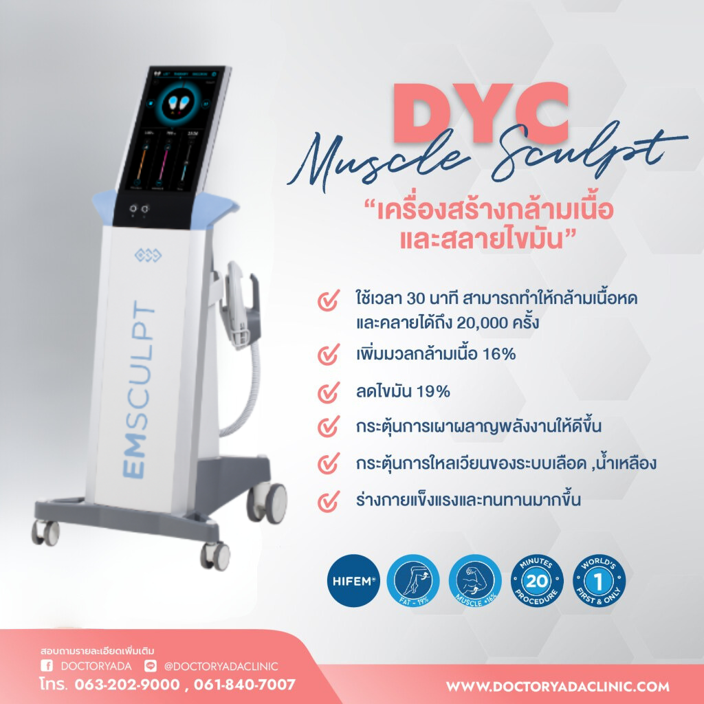 แต่ไม่ต้องกังวลไปค่ะ เรามีตัวช่วยในการรักษา ก็คือเครื่อง DYC Muscle Sculpt (เครื่องสร้างกล้ามเนื้อ และสลายไขมัน)