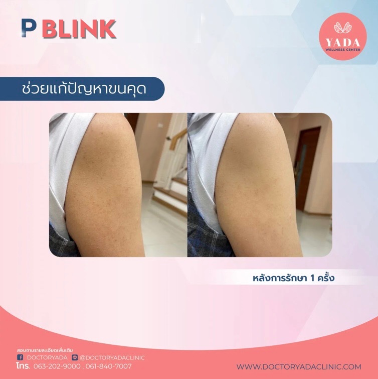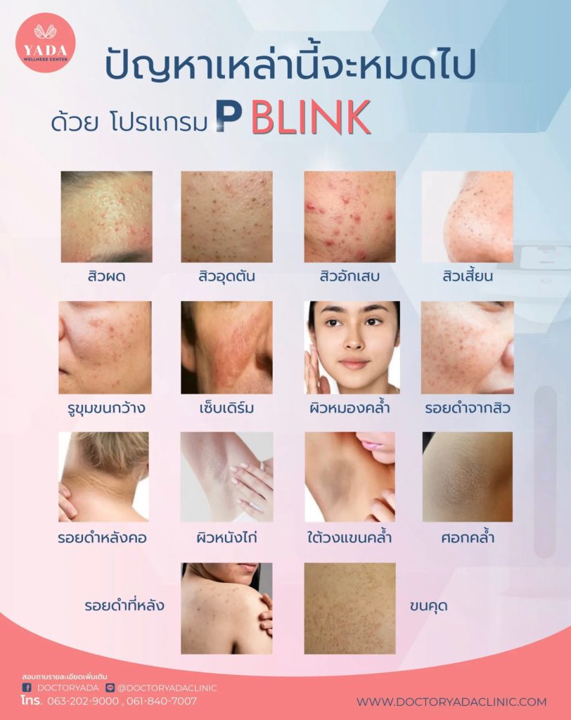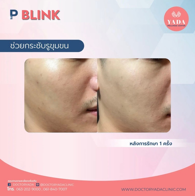 P Blink เพื่อหน้าสะอาดใส รักษาสิวผด สิวอักเสบ สิวเสี้ยน รอยดำ ขนคุด หลังทำจะมี เซลที่ตายแล้วหลุดออกมาให้เห็นเลยค่ะ