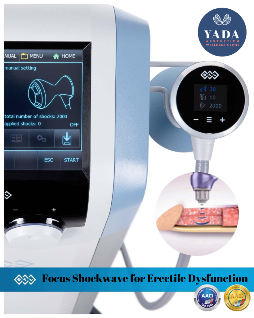 Erectile Dysfunction is a condition that can affect men’s self-esteem, relationships, and quality of life. At Yada Clinic, we understand the sensitivity of this matter and are committed to offering discreet, compassionate care. Focus Shockwave Therapy for ED is a revolutionary, non-invasive treatment that heralds a new era in men’s health. Utilizing precise, low-intensity sound waves, this therapy stimulates the body’s natural healing processes, promoting the regeneration of blood vessels in the penile tissue and thus, improving blood flow and erectile function.